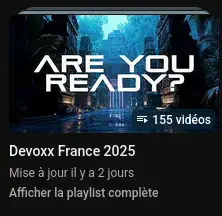 La playlist de Devoxx France 2025 se remplit avec des vidéos masquées, donc la publication devrait bientôt être faite 🤞